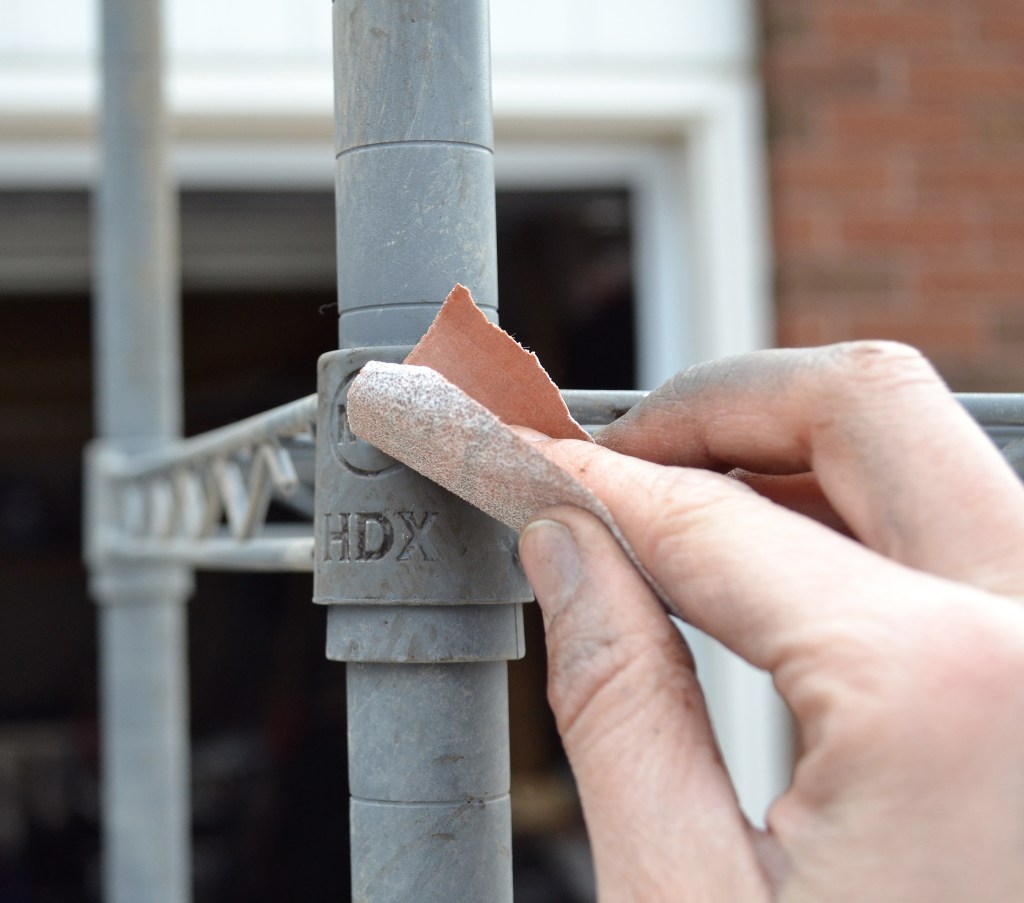 1. Wipe down your pantry shelving, making sure they it’s clear of debris, dirt and dust. Then place them in a well ventilated area where over spray won’t be an issue.