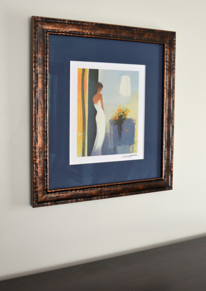 Different flooring and window trim not withstanding, I really do put this style transformation down to paint colour and accessories. How did I go from one to the other by only purchasing lamps? I know it can sound a little impossible at first glance, but the only trick here is that I shopped my house of course! I’ve talked about shopping your house before and I bring it up again because it is so useful and frugal to do. I love blues and thought they would pair well with the neutral walls and dark furniture of our bedroom set, but the reason I went with blue was I had a plethora of blue already at my disposal. Our previous home featured a beautiful navy accent wall in our open concept kitchen, and I had lots of blue decor to go with it that no longer made sense in our new living room because I no longer have a navy blue accent wall. Sad Face. Waste not, want not.