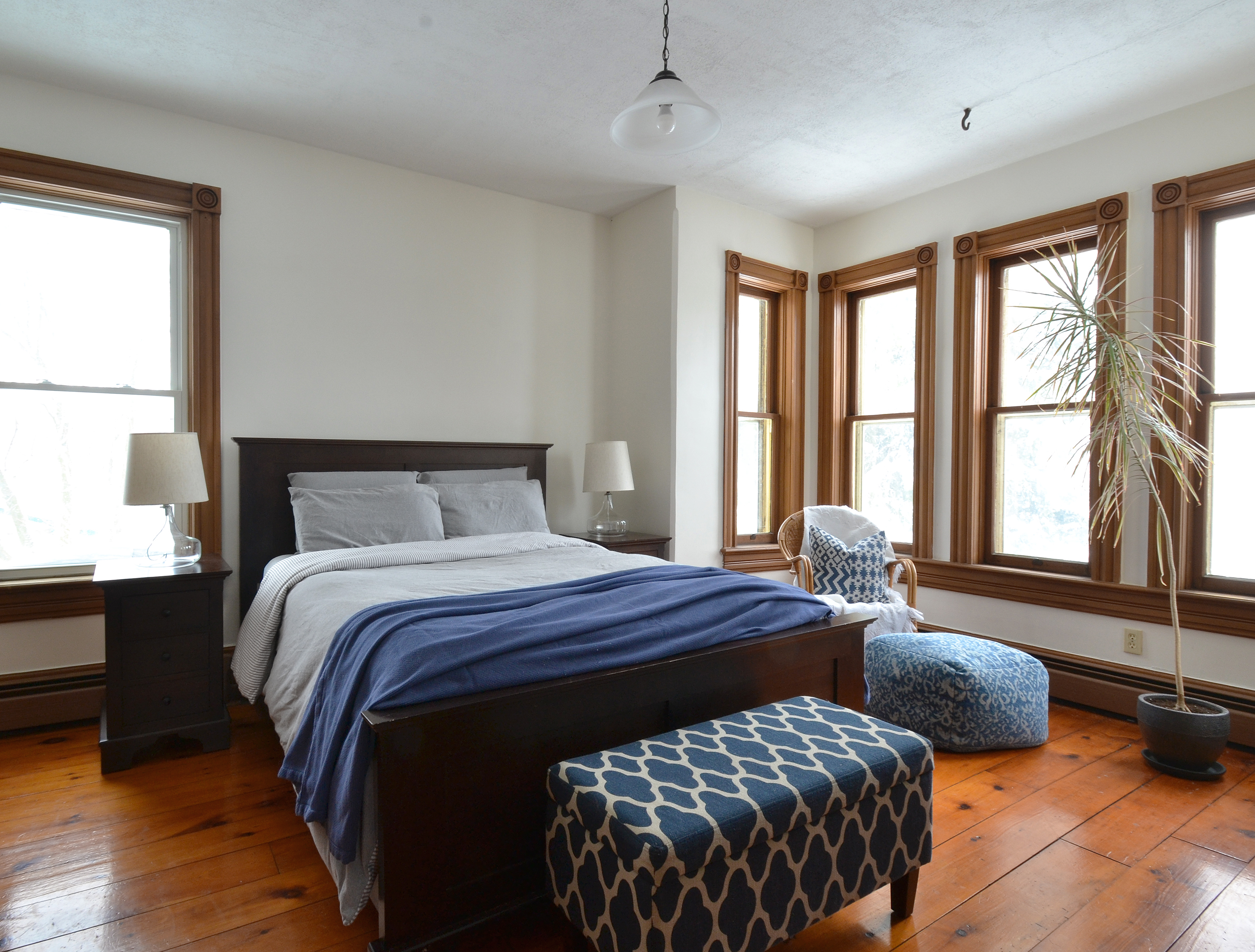 Our new principal bedroom is structurally beautiful. It’s big and it has a bank of windows that lets in ample amounts of natural light. It’s a soft white. I have always wanted a white bedroom, and it’s the only room in the house I didn’t paint (aside from those rooms we plan to renovate). Being in a new house I was really hankering to change up our bedroom, and I thought a little bedroom revamp was in order. Of course, having just moved and fully maxed out our moving-in budget on painting, I was hard pressed to accomplish my goal without spending any money.
