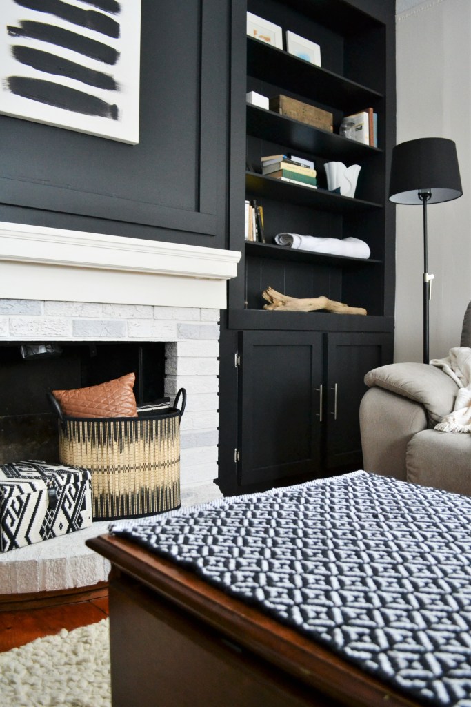 I have been tackling a lot of our home renovation DIY projects by myself these days. My fiancé has taught me a lot and he really doesn’t like doing the work, but I do enjoy it. The makeover in this study took three days and involved painting, removal and replacement of mouldings and millwork, painting the fireplace with a whitewash on red brick, replacing hardware and moving in the furniture. To understand the transformation the before picture is a must-see.